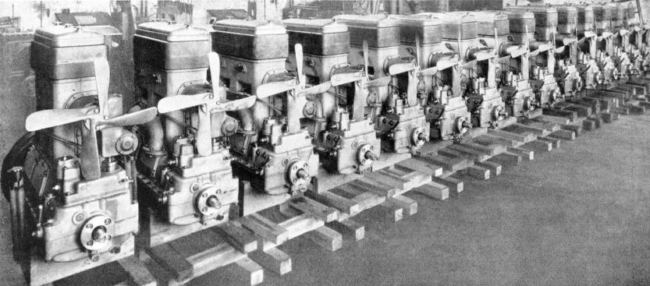 Die Junkers-Forschung an Ölmotoren erreichte in Aachen bereits Dimensionen, die mit Fabrikationsanlagen vergleichbar waren. Das Werkfoto, etwa aus dem Jahre 1910, zeigt mit einem Blick in die Maschinenhalle der privaten „Versuchsanstalt Prof. Junkers“.